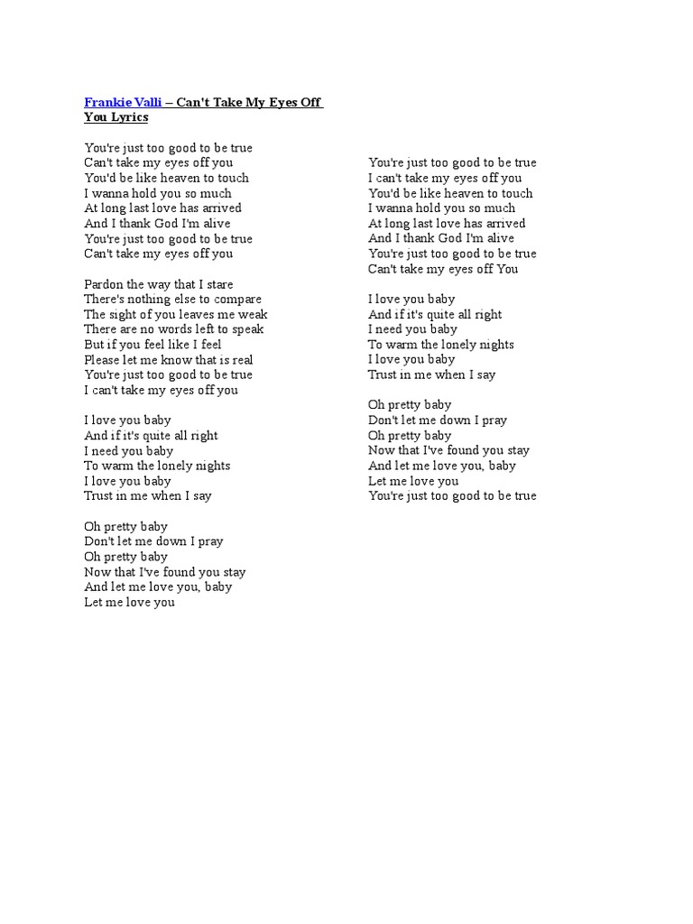 Chord Dan Lirik Lagu Can T Take My Eyes Off You Milik Frankie Valli I Love You Baby Semua Halaman Sonora Id